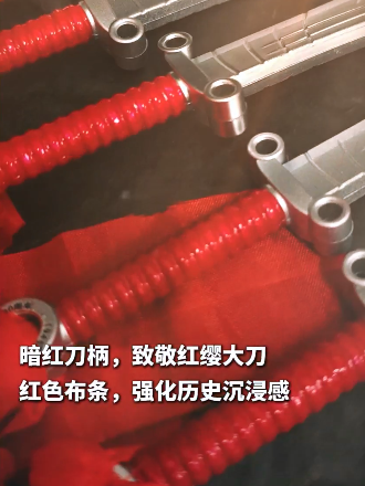 ▸ 暗红刀柄设计:致敬抗战红缨大刀,配以红色布条缠绕,强化历史沉浸感
