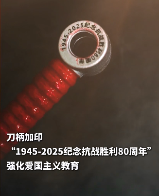 ▸ 蚀刻加印工艺:正面蚀刻"保衛山河"繁体字样,刀柄加印"1945-2025纪念抗战胜利80周年"