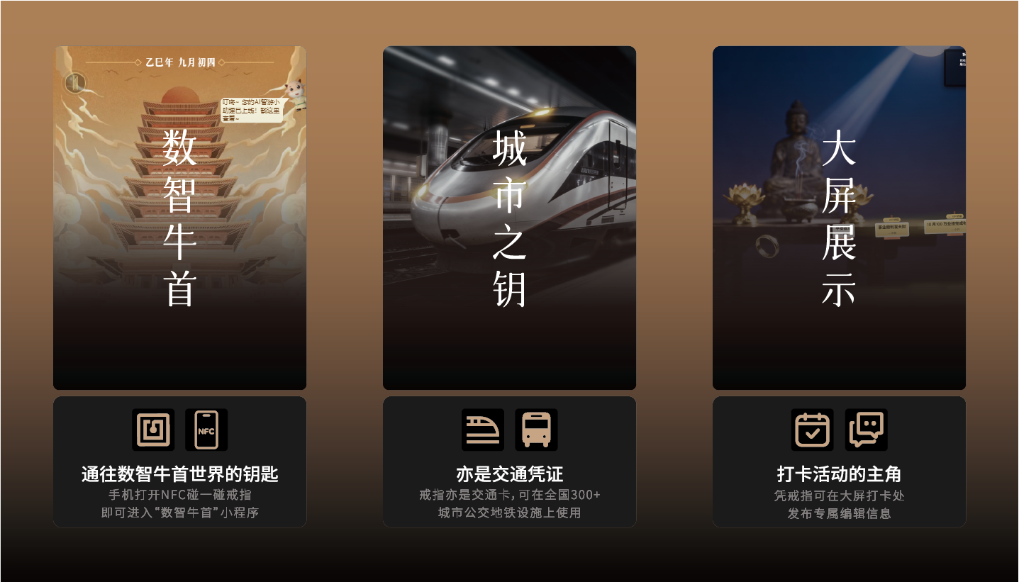 场景:在牛首山佛顶宫前,或在家中书房,用戒指轻碰手机,即刻进入“佛塔点灯”小程序,完成打卡。这是专属于文化朝圣者的现代仪式。