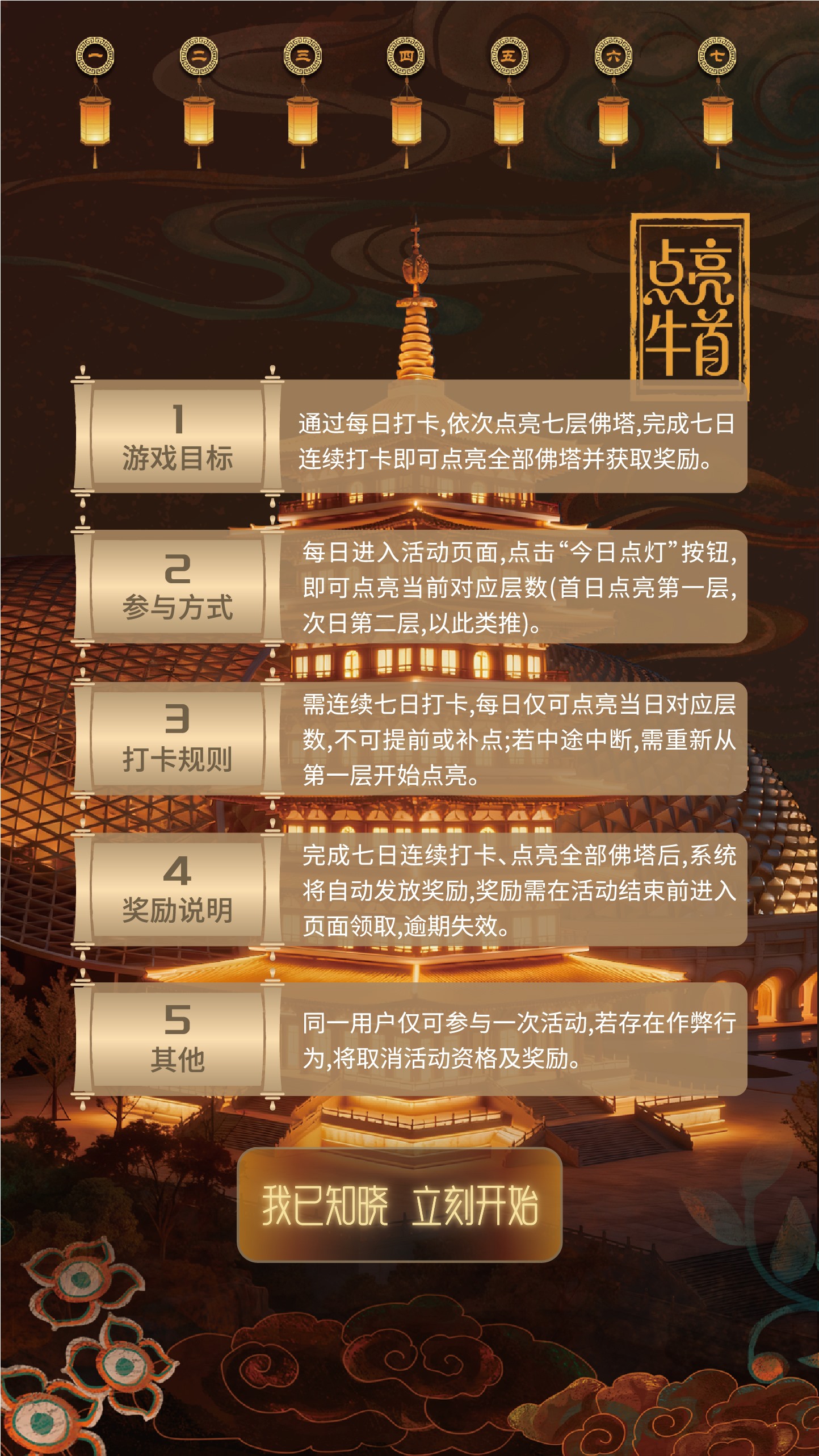 佛塔点灯游戏:用户每日用戒指轻碰手机即可参与打卡,打卡完毕会送赠送每日一签及每日一字集字活动。连续点亮佛塔和集齐“牛首山”等核心字词可获得丰厚奖励。