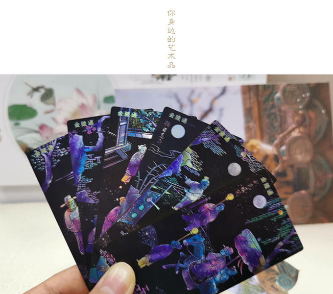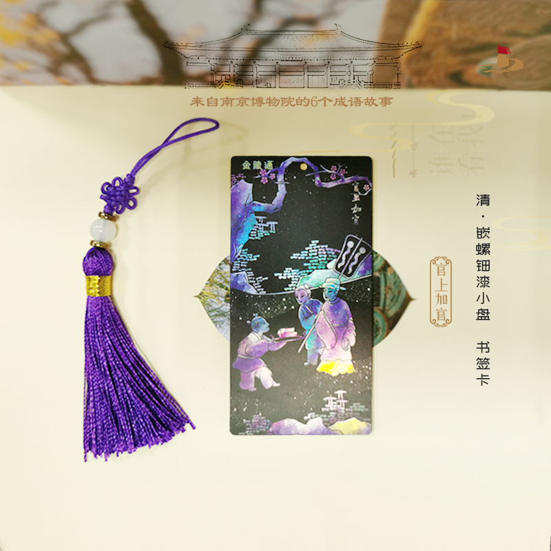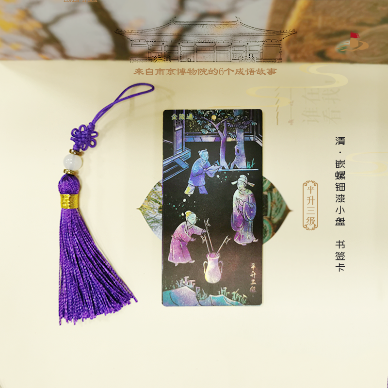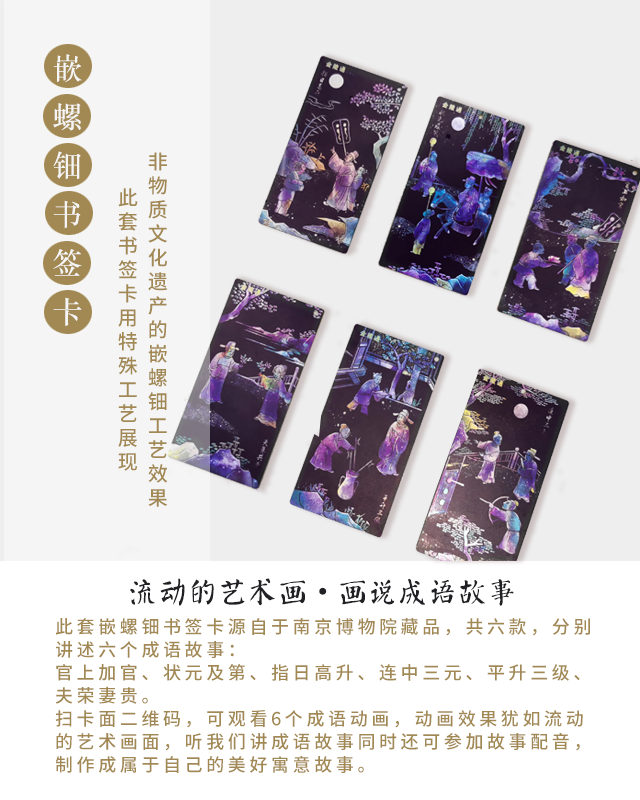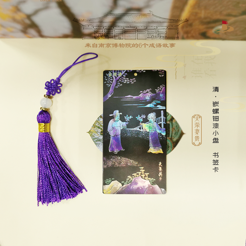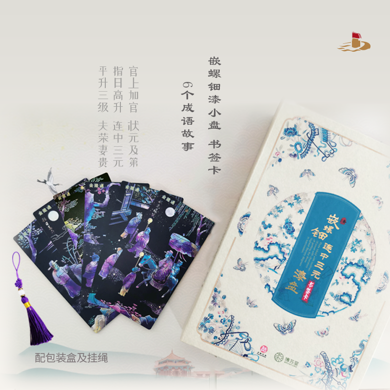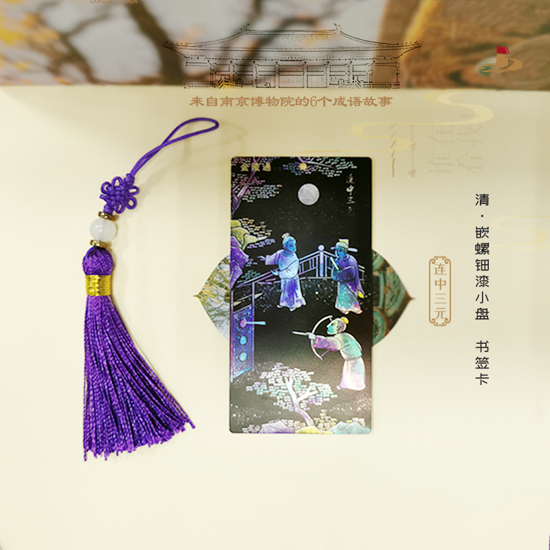 本品创意源于南京博物院珍藏的“嵌螺钿人物纹小盘”,将这项绚丽的非物质文化遗产技艺与现代出行需求相结合,打造出一系列独具东方美学的艺术书签交通卡。产品以书签为载体,承载全国互联互通交通功能,配以精美礼盒与数字互动,是融合古典韵味与现代生活的雅致礼物。