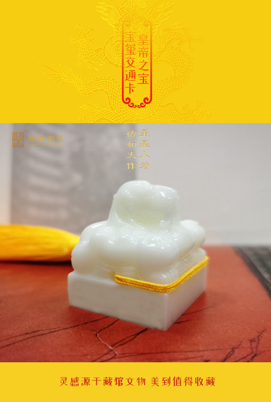 本品灵感源于故宫博物院珍藏的乾隆二十五宝之一——栴檀香木“皇帝之宝”。我们以现代工艺复刻这枚“以肃法驾”、随帝出巡、见证大典的传奇宝玺,将其化作一枚可随身携带的交通卡。采用仿玉脂温润材质,保留盘龙钮等经典细节,让您在现代都市的通勤中,体验“执掌印信,畅行四方”的穿越之趣与尊贵仪式感。