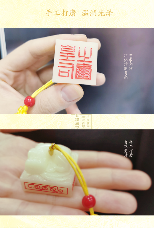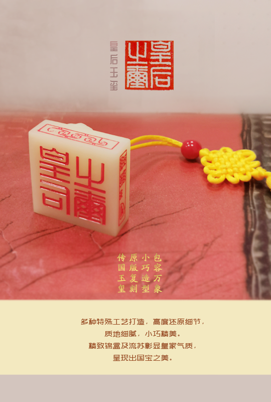 触感与观感的还原:创新使用高级仿羊脂白玉树脂材质,手感细腻温润,光泽流转,完美再现“以玉比德”的东方审美。印底“皇后之玺”篆书朱红清晰,如同一份穿越时空的契约封印。
