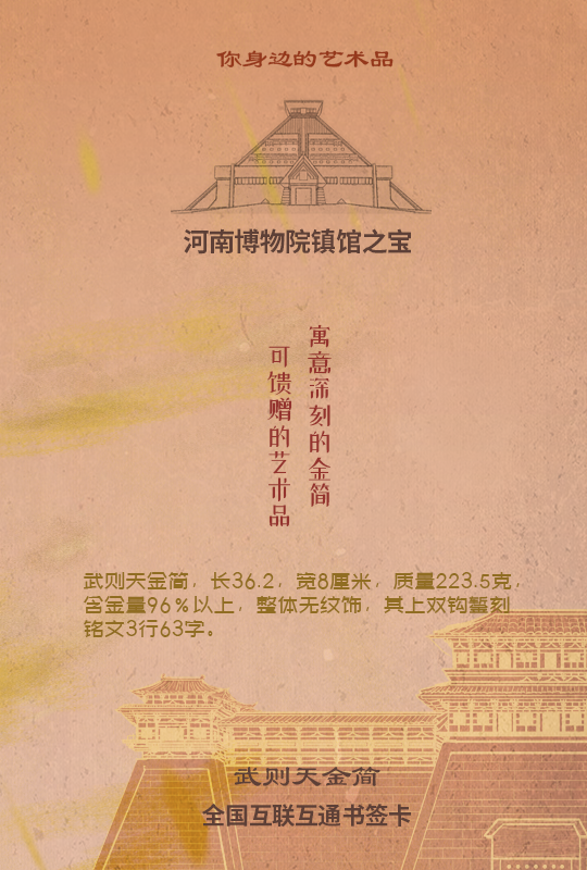 武则天金简交通卡,是一款以河南博物院镇院之宝、中国现存**女帝王亲铸遗物——“武则天除罪金简”为原型打造的文创交通卡。产品以约0.1毫米精度还原了国宝金简的独特形制与篆书文字,将其承载的盛唐气象与女帝心绪凝铸于一张可通行全国的现代交通卡中。它既是一枚可夹藏于书中的“微型文物”书签,更是一张蕴含历史能量的出行卡片,让使用者在现代都市的穿梭中,感受跨越千年的文化对话。