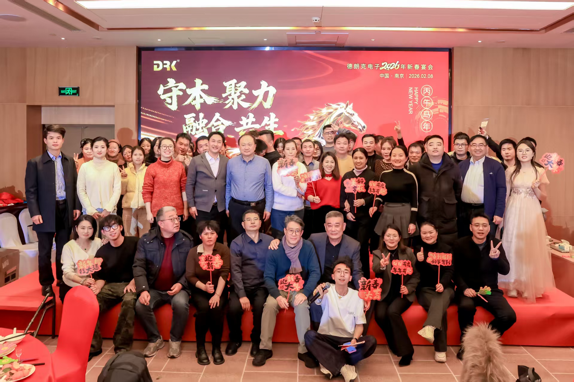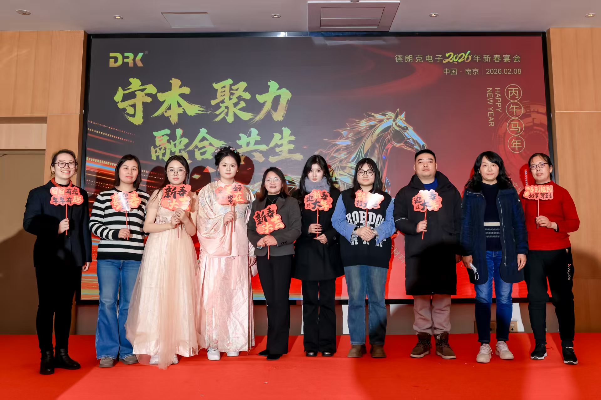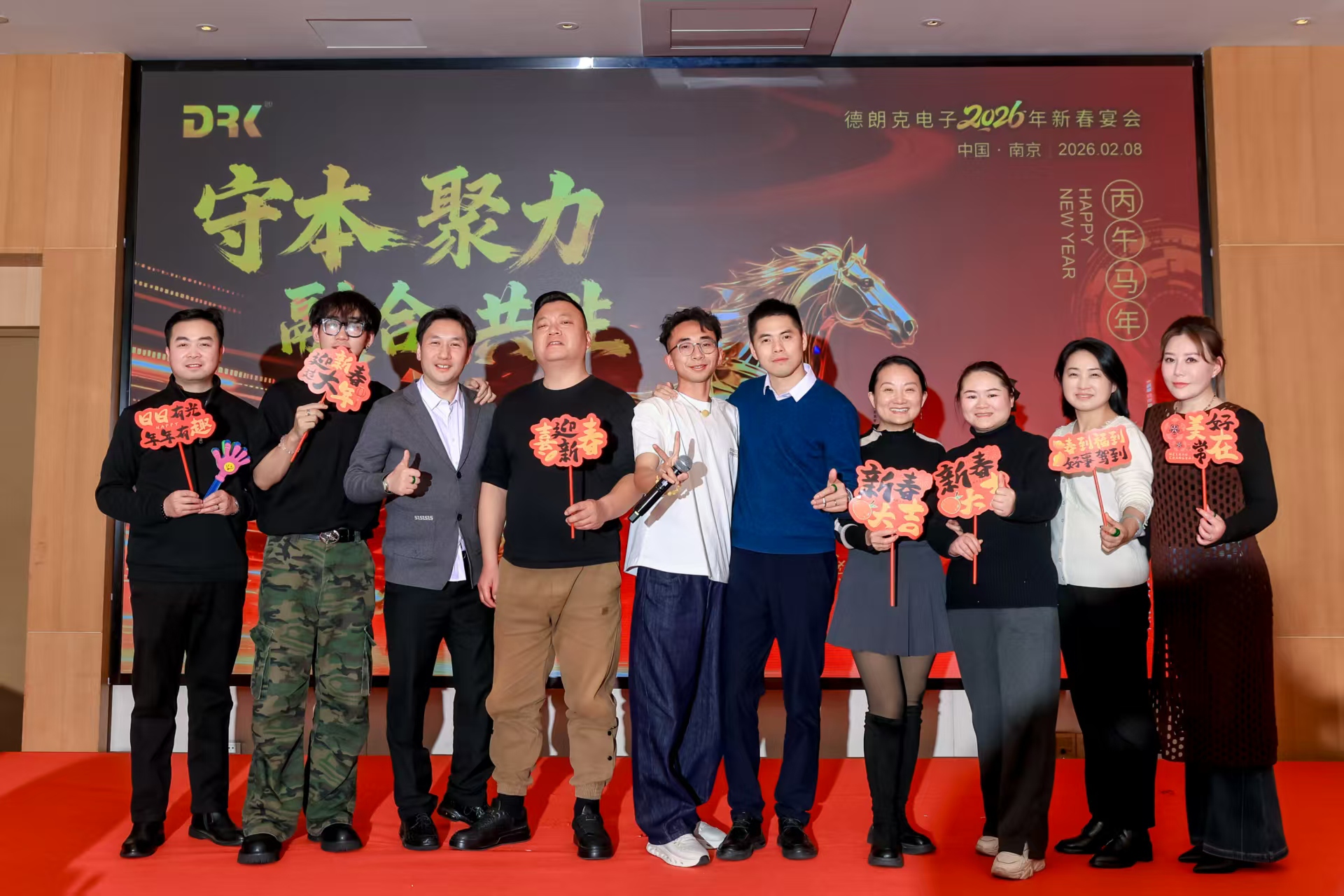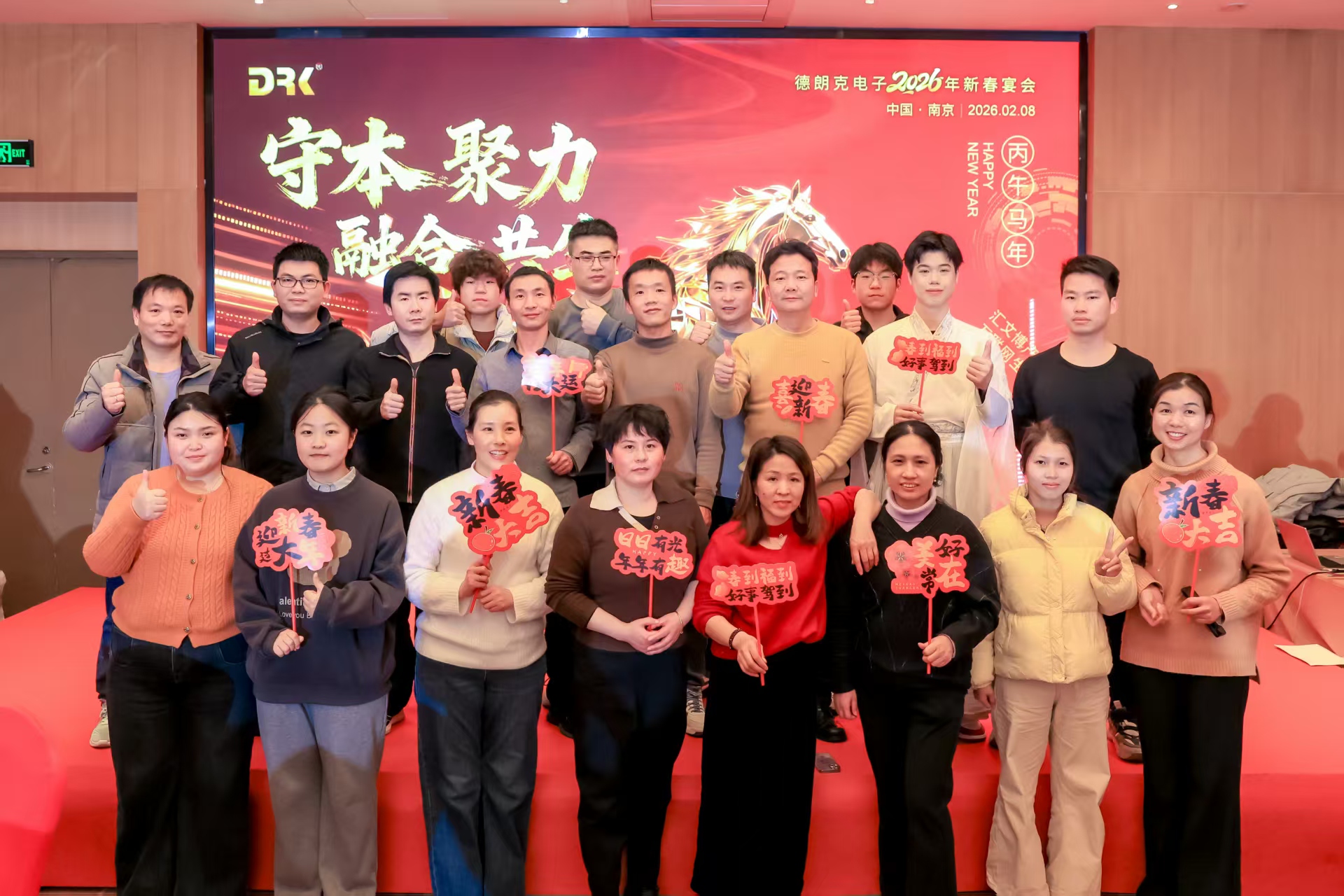 2026年2月8日晚,南京德朗克电子科技有限公司围绕“守本聚力融合共生”主题,成功举办新春晚宴。活动以主题阐释开篇,通过领导致辞、年度表彰、员工才艺演出及互动环节,展现了公司的企业文化与团队活力,凝聚了全体同仁同心共赴新征程的信念与决心。