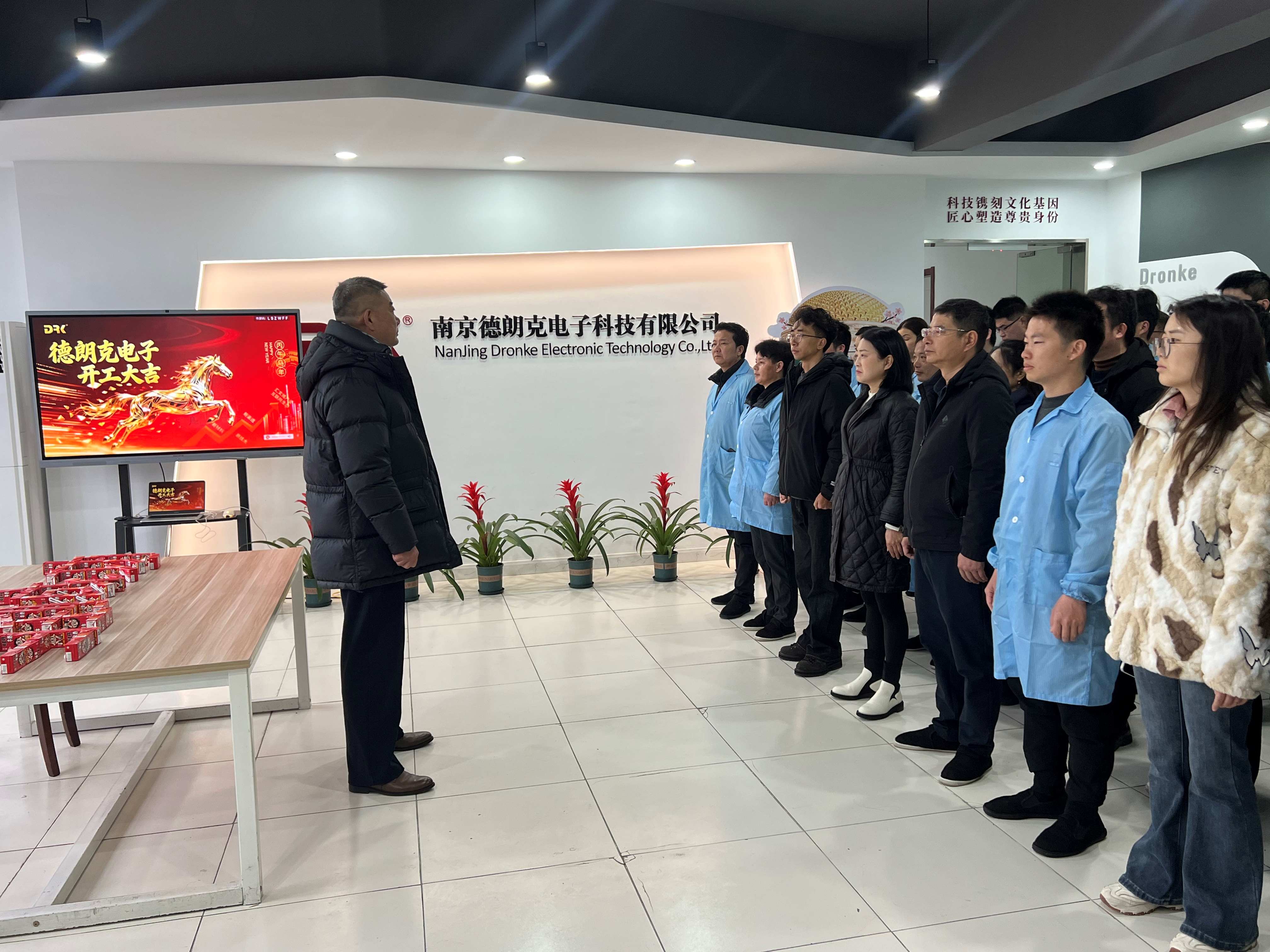 2026年2月24日,正月初八,南京德朗克电子科技有限公司大厅内洋溢着喜庆与振奋的氛围。上午八时三十分,公司2026年开工仪式正式拉开帷幕,全体员工以饱满的精神状态齐聚一堂,共同开启新征程的奋进篇章。